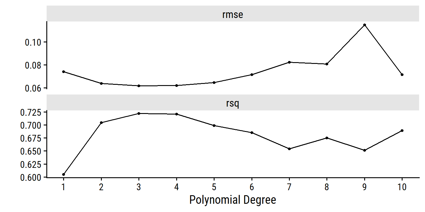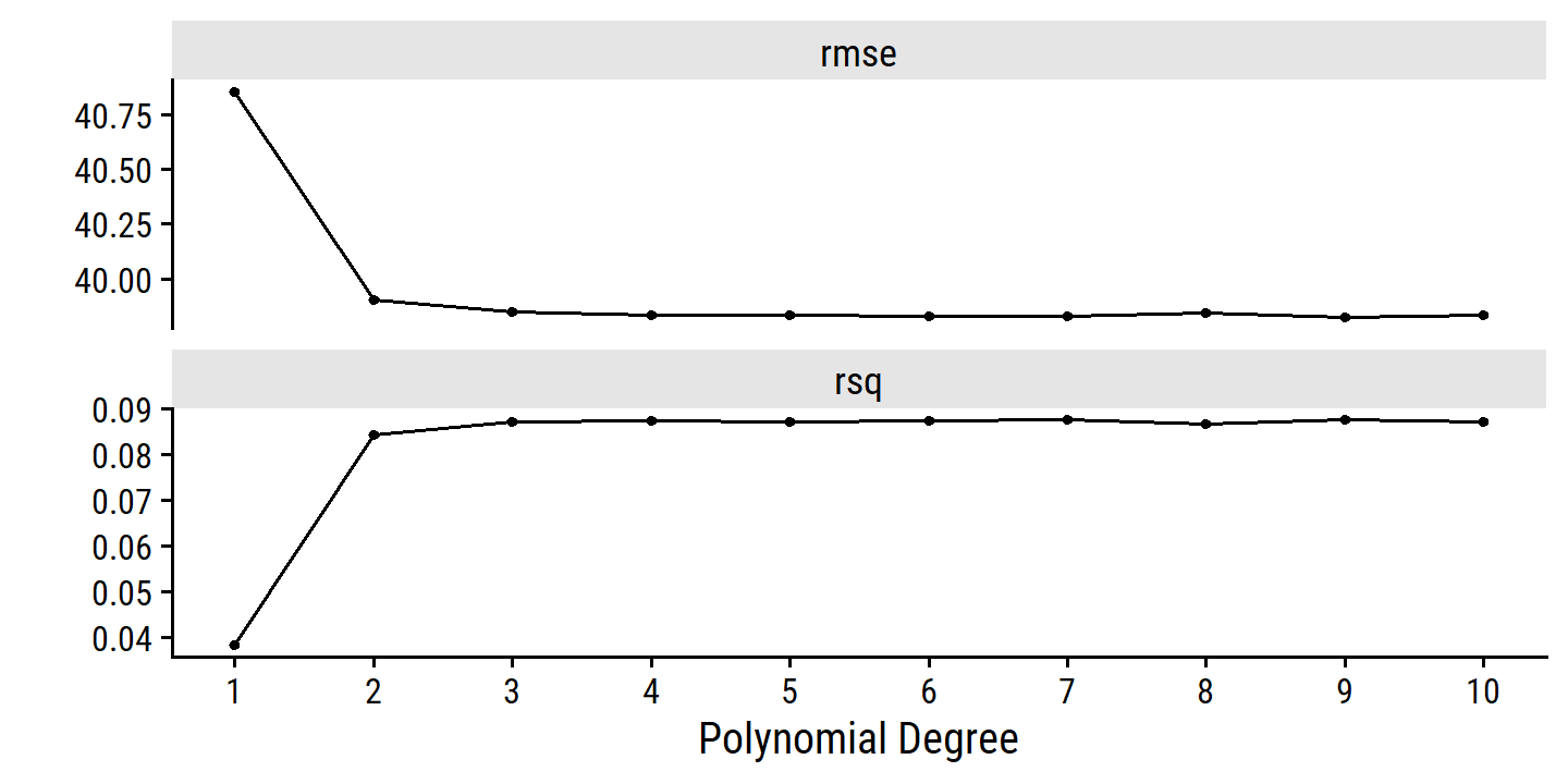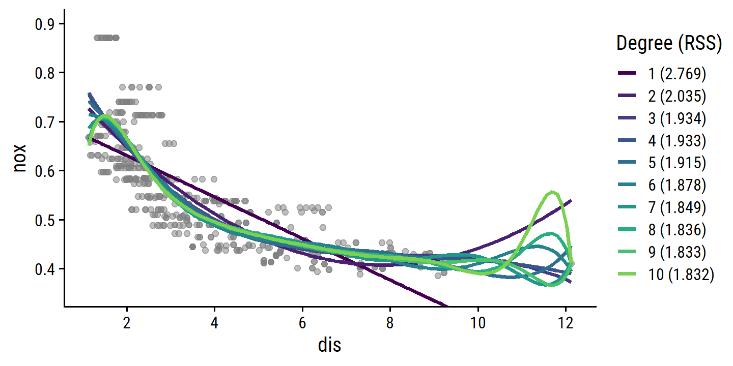 \[ y_i = \beta_0 + \beta_1 x_i + \beta_2 x_i^2 + \beta_3 x_i^3 + \dots + \beta_d x_i^d + \epsilon_i. \]