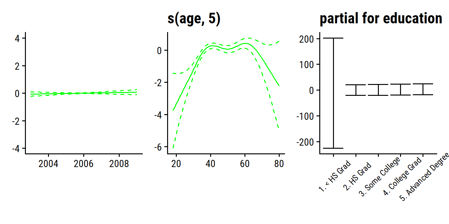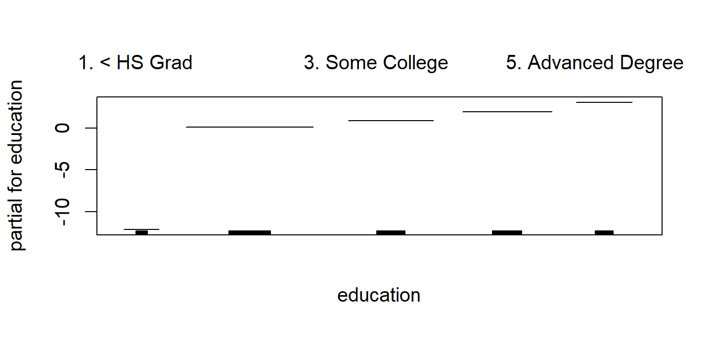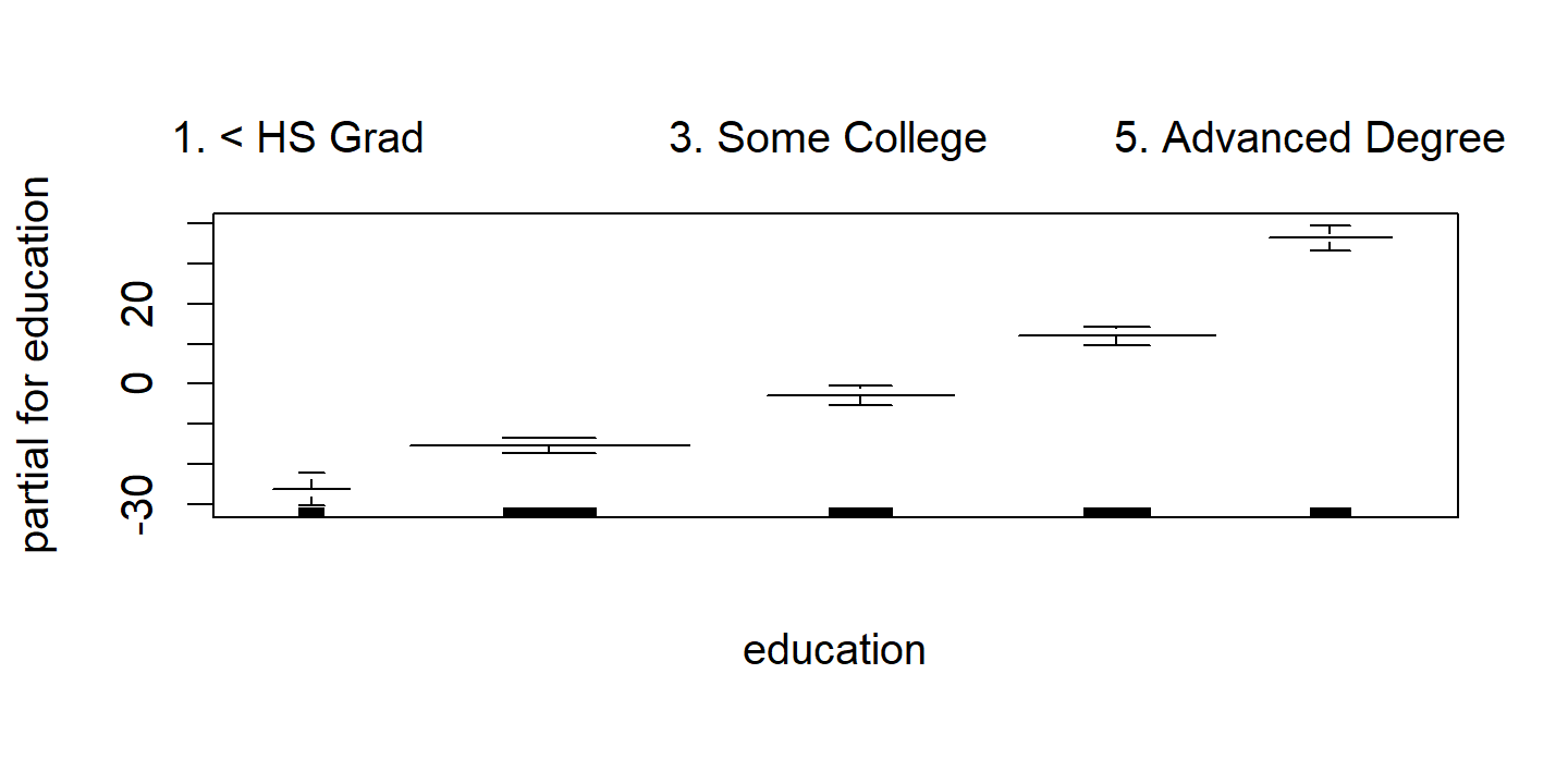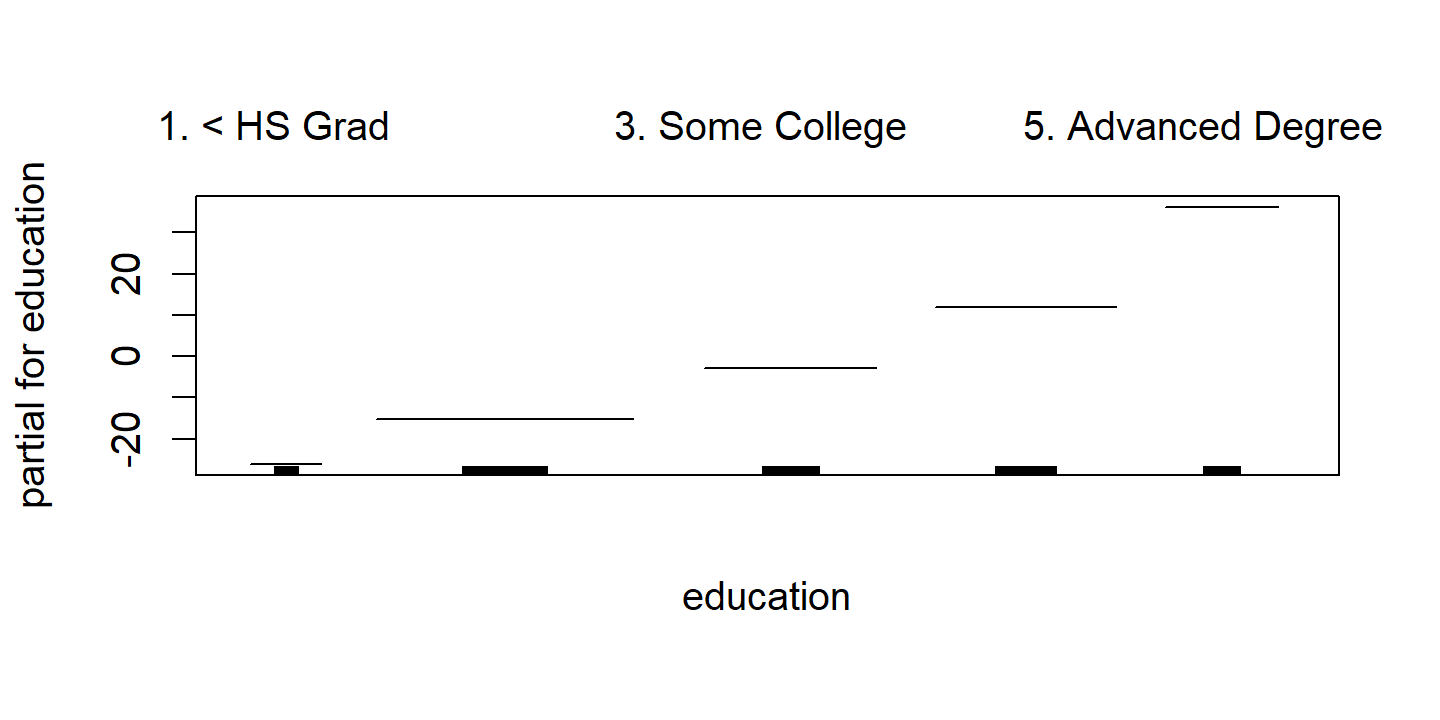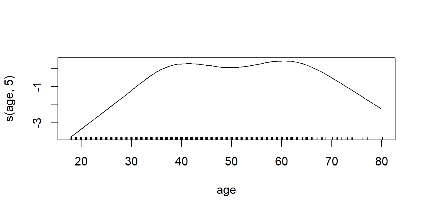 To re-create Figure 7.2, I’ll use cut with 4 breaks to separate the age predictor: