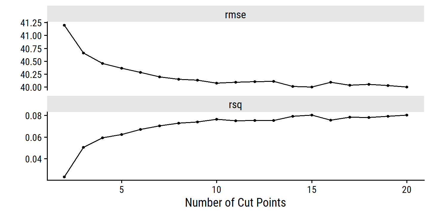 This involves using a set of \(K\) cutpoints \(c_k\) which corresponds to dummy variables \(C_k(X)\):