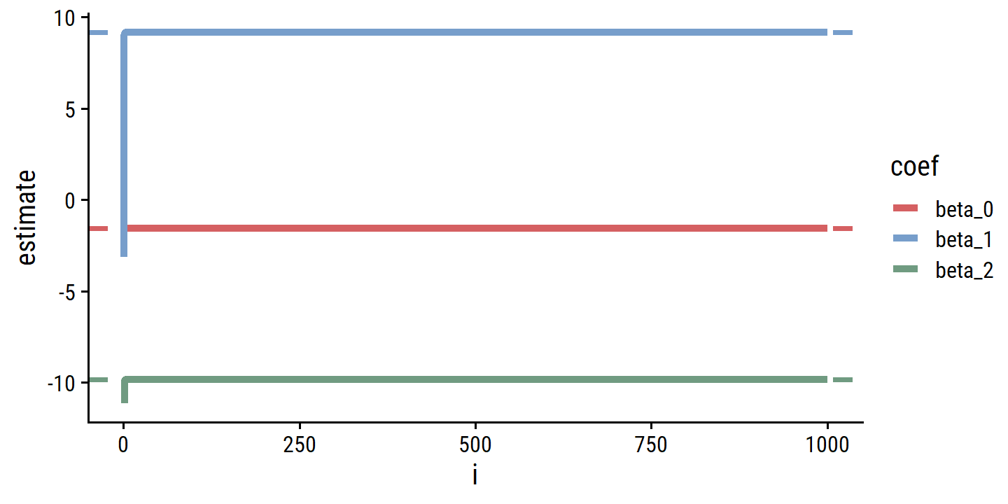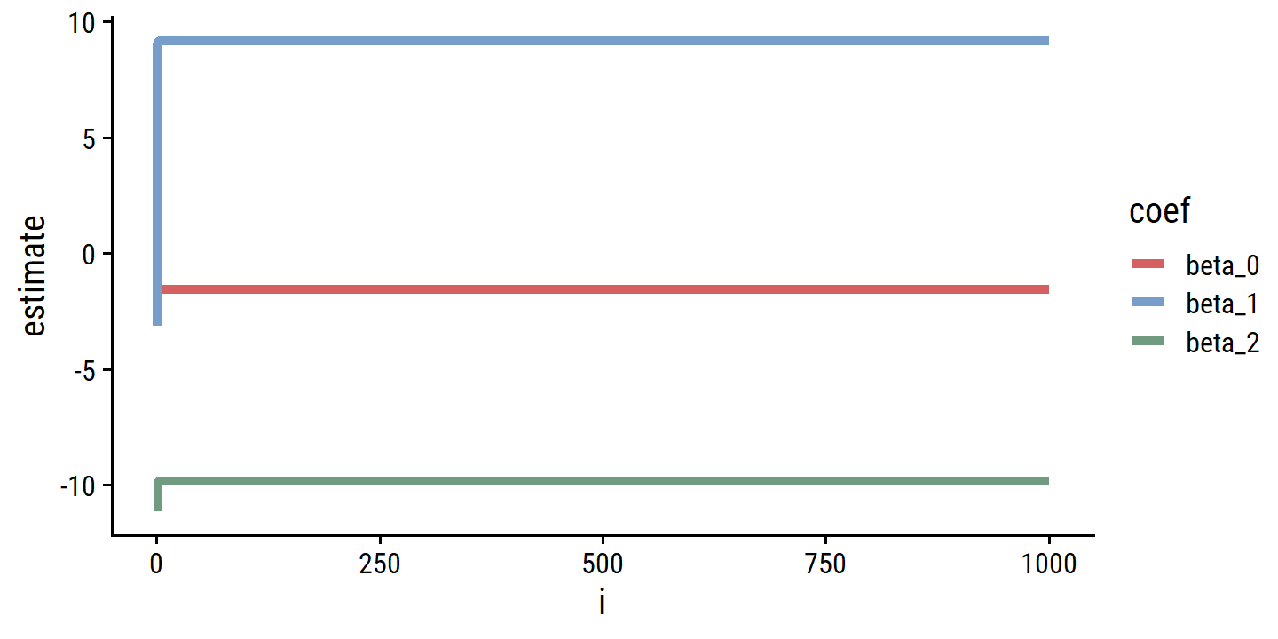 where \(I()\) is an indicator function that returns a 1 or 0 if the condition is true or false. The least squares linear model is then: